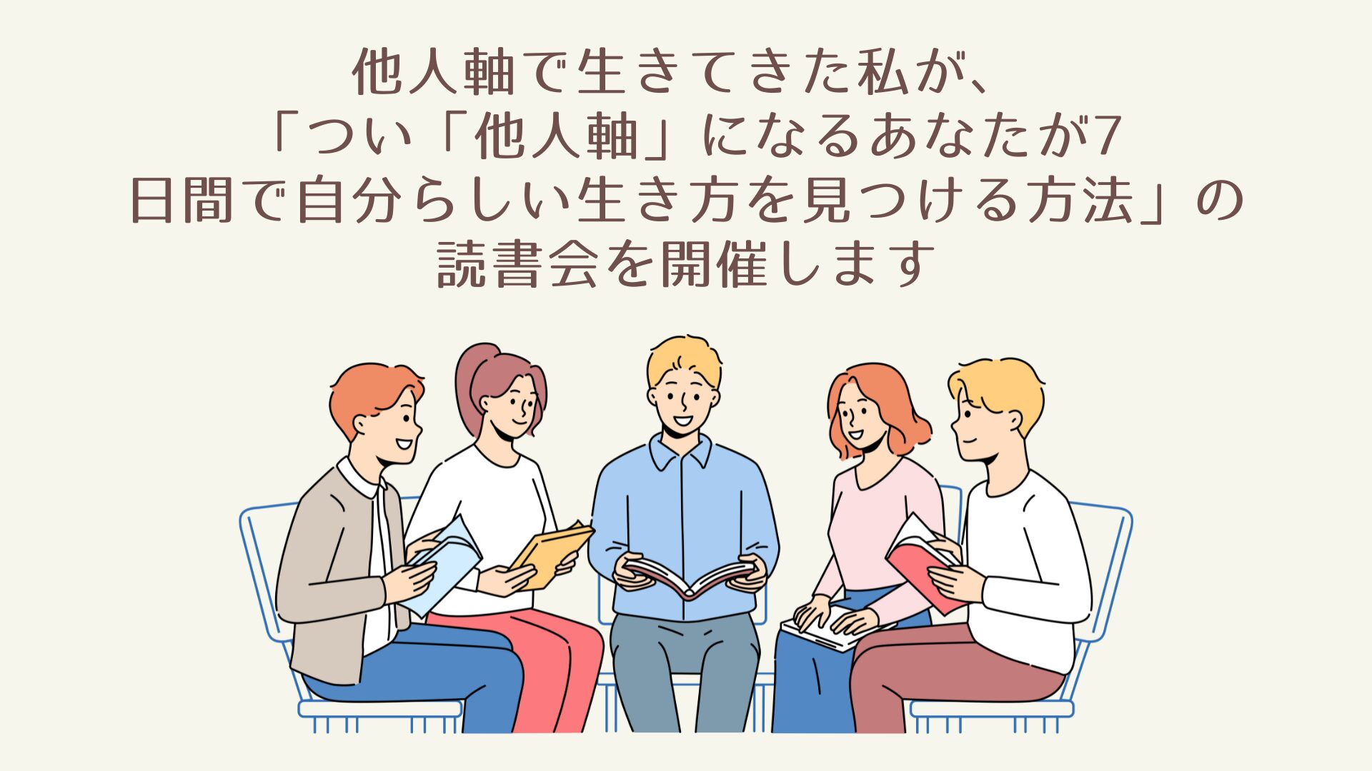 他人軸で生きてきた私が、「つい「他人軸」になるあなたが7日間で自分らしい生き方を見つける方法」の読書会を開催します